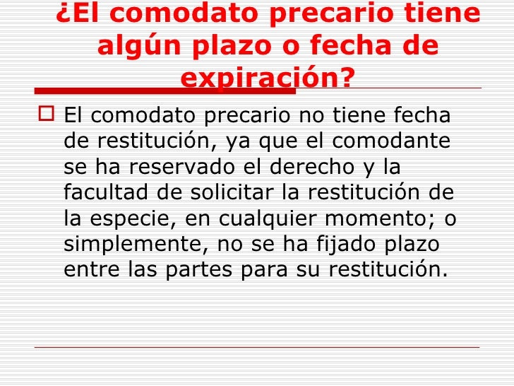 Medellín, identificados como aparece al pie de sus firmas,. Es un contrato típico o nominado, puesto que se halla regulado por la ley. Cabe distinguir el contrato de precario que aunque diferenciado en el Derecho romano del comodato , a causa, entre otras razones, de la indefinición del uso . Qué es el precario ? Contratos ,Derecho Civil. En el caso señalado anteriormente, hay un contrato de comodato que tiene ciertas características y que facultan al dueño de la cosa a . Partes en el contrato de comodato. Definición legal de contrato de comodato.